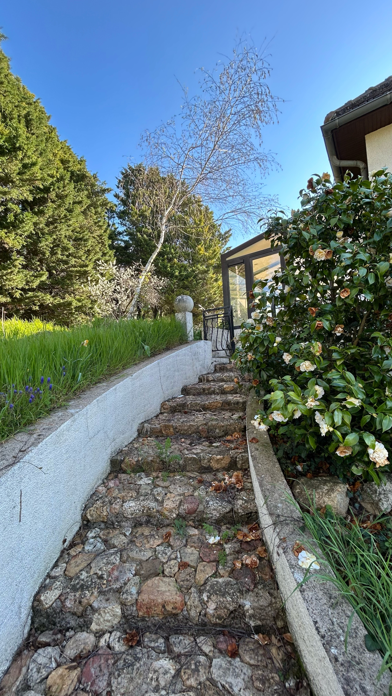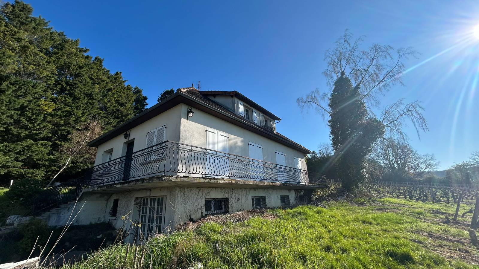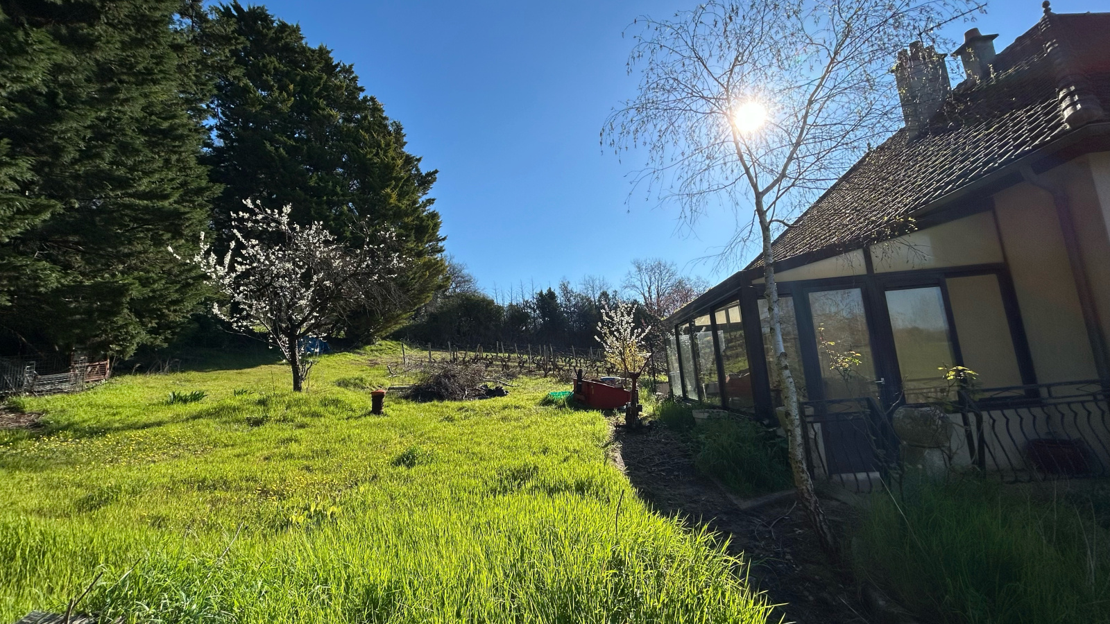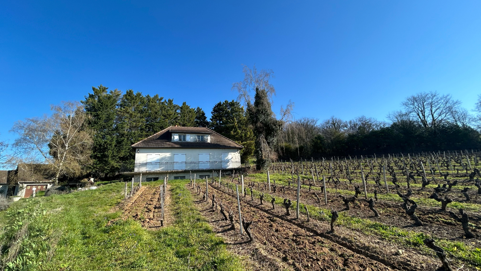 Une jolie vue dégagée et sans vis à vis, ni voisins sur plus de 8 600 m² de terrain et de vignes (vignes disponibles au 1er novembre 2026).